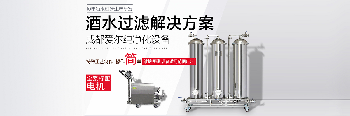成都愛爾純凈化設備有限公司,坐落于美麗的天府之國,成都市溫江區(qū)海峽科技園工業(yè)區(qū),專業(yè)從事于過濾、凈化技術(shù)的研發(fā)應用,產(chǎn)品有保健酒過濾設備、白酒過濾設備、白酒凈化設備、水凈化設備等,公司引進世界先進過濾分子技術(shù),結(jié)合專業(yè)技術(shù)人員資深多年實踐經(jīng)驗,解決酒類、飲水類后期處理難題。 業(yè)務涵蓋,酒類過濾:除混濁沉淀,澄清處理、除苦味,異雜味,新酒催熟陳化處理 、除塑化劑、固形物、雜醇油、甲醇及各類含量超標后期處理。 水類:軟水、純凈水、礦泉水、飲料等凈化處理。用心為客戶提高生產(chǎn)效率、提高產(chǎn)品質(zhì)量、降低生產(chǎn)成本、環(huán)保減排而開發(fā)創(chuàng)新,堅持奮斗。 公司至誠每一位客戶,“誠信服務,客戶至上”為宗旨,為客戶要求,用心凈化每一點滴,我們都將以精準的數(shù)據(jù)化設計、嚴格的設備制作質(zhì)量把關(guān)、快捷專業(yè)的安裝調(diào)試以及周到的售后服務,解決客戶生產(chǎn)過程中遇見的各種酒、水后期處理的技術(shù)難題。